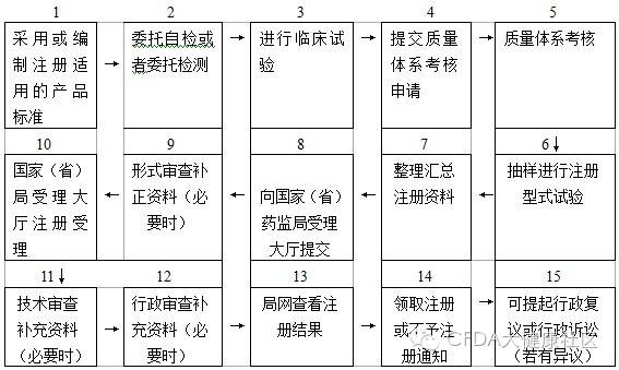 注:Ⅱ类产品在省药品监督管理局注册; Ⅲ类产品在国家药品监督管理总局注册